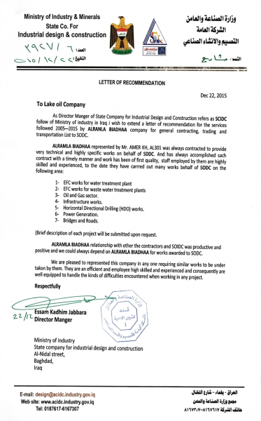 It is one of the Iraqi private sector companies, it started Practicing its activities since 1988 AD in the name of Al- Furat Office for Contracting and Public Transport with a capital of 1,000,000 million dinars. After that, the Ramla Al-Baida Company for Contracting, Trade, and Transport was established. in 2003 with a capital of 5,000,000,000 Five billion dinars. Our company is implementing contracts in the fields of road construction, water, and sewage networks, communication networks, and building construction and maintenance, and its general The administration headquarters is in Baghdad, our company in its policy try to achieve the highest production rates at short time .